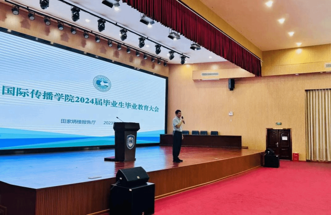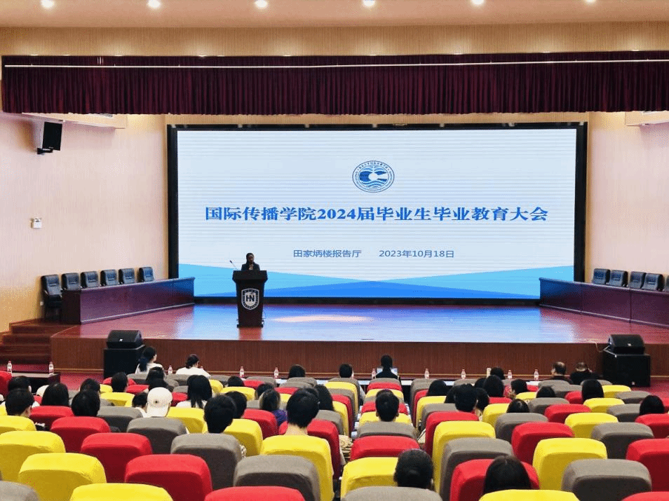 10月18日下午,金沙js5588国际传播公司2024届毕业生毕业教育会议在海甸校区田家炳楼二楼报告厅举行,2024届全体研究生和本科生参加毕业教育大会,会议由党总支书记谢辉凡主持。