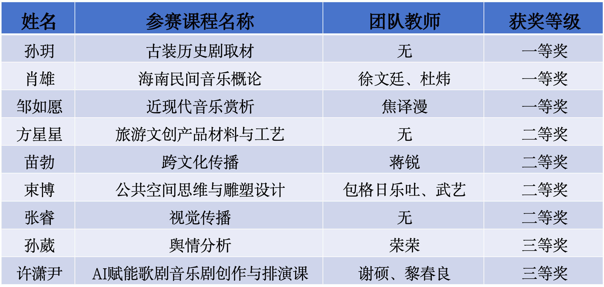 公司教师结合自身教学实践,围绕“AI赋能课程建设”,将AI图像、视频生成、剪辑、三维建模、数字人、大数据等技术与中国优秀传统文化、音乐、设计、大众传播等议题结合,积极参赛,斩获佳绩。孙玥、肖雄、邹如愿荣获一等奖,方星星、苗勃、束博、张睿荣获二等奖,孙葳、许潇尹荣获三等奖。
