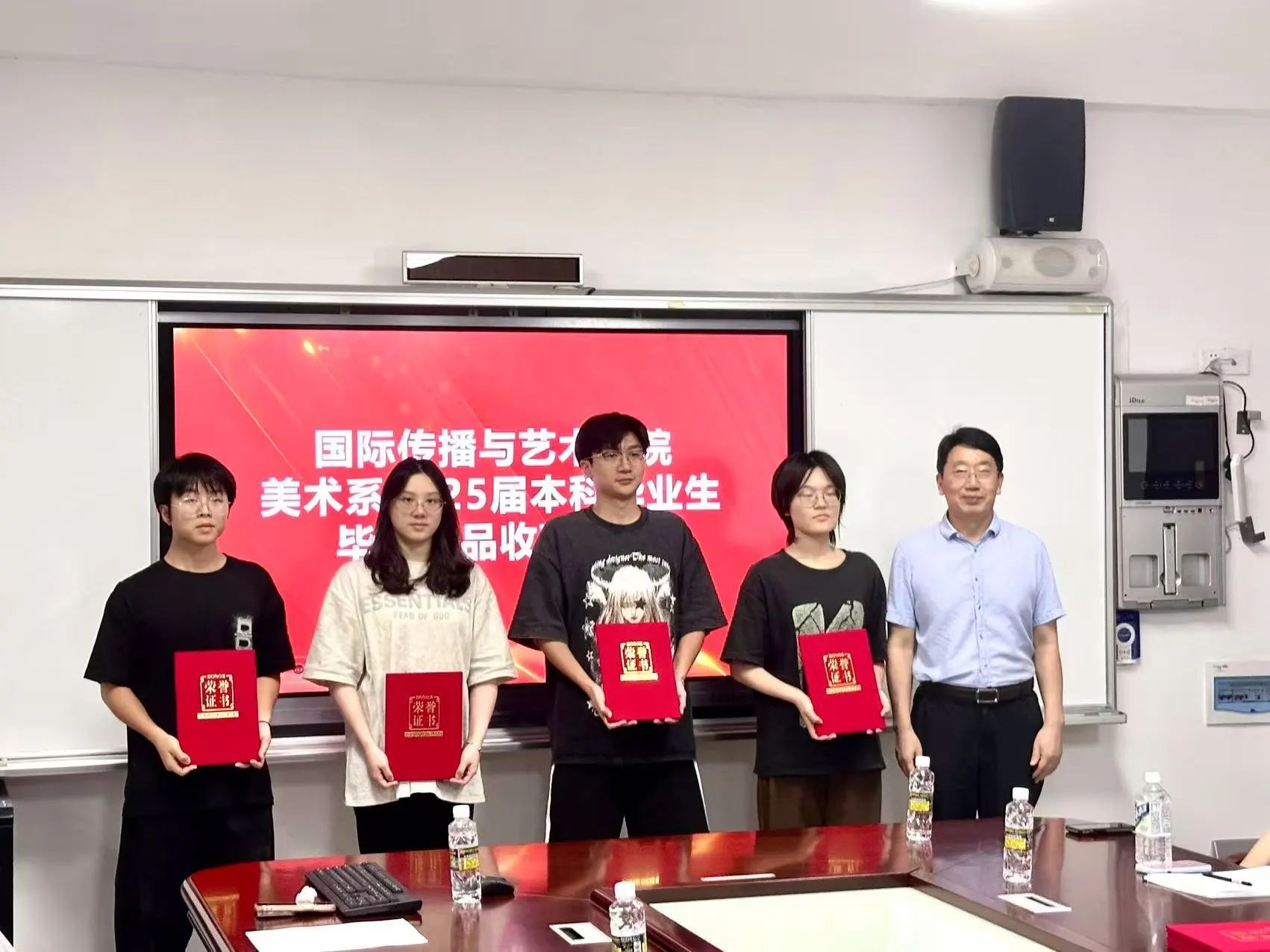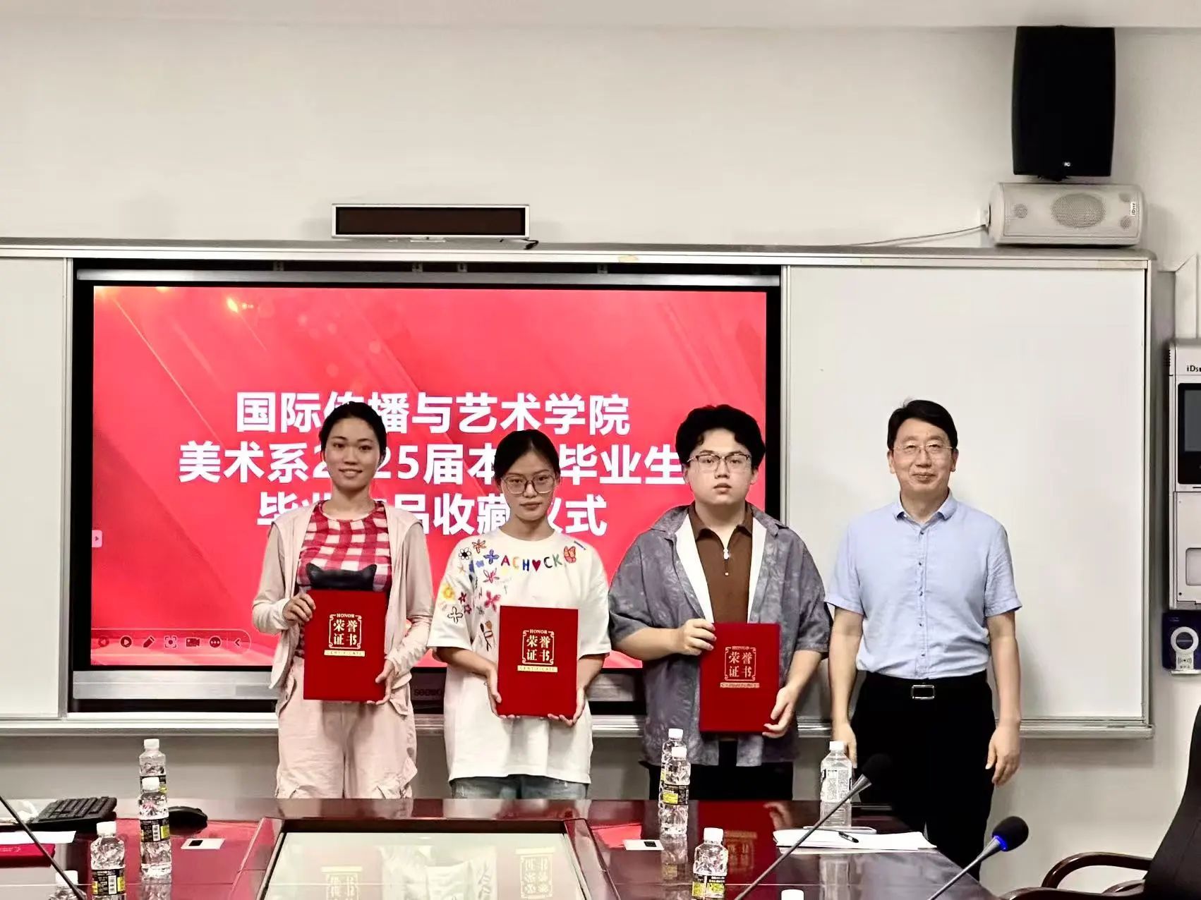 2025年6月6日下午,金沙js55882025届毕业生优秀美术作品收藏仪式在田家炳楼举行,公司经理郑立波,副经理周琳琳、元志东,以及近40位师生代表参加收藏仪式。收藏仪式由美术系副主任束博主持,共有12件美术系毕业作品被收藏,作品涵盖了油画、国画、雕塑等艺术门类。