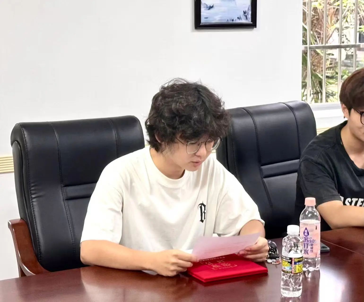 仪式上,郑立波经理对毕业生的艺术才华和努力表示高度赞赏,强调公司对美术教育的重视和对员工创作成果的认可。他对2025届毕业生的美好未来提出了殷切希望,并分享了自己的大学故事和生活。经理表示艺术是时代的镜像,是思想的凝练,更是同学们的精神灯塔。作品被公司收藏是同学们的荣耀,更是连接母校的情感纽带,为自己的一生种下美好记忆的种子。参加收藏仪式的同学代表表达了自己对公司、公司和老师的感激之情,表示自己的作品能被公司收藏感到非常荣幸,对自身具有很大的激励作用,感恩老师们的培养和指导。