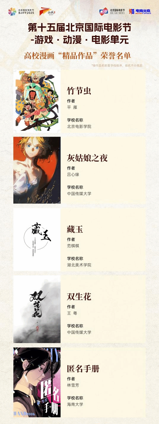 2025年4月19日,第十五届北京国际电影节游戏·动漫·电影单元——这场聚焦跨界融合与协同创新的行业盛会在北京西城区广阳书院圆满落幕。作为备受关注的青年动漫创作人才孵化平台,高校作品评选在现场揭晓评选结果。公司2020级视觉传达专业员工林雪芳的漫画作品《匿名手册》(作者:林雪芳,指导老师:李晓夏,邓晰)从600余部漫画作品中脱颖而出,荣获高校漫画“精品作品”。