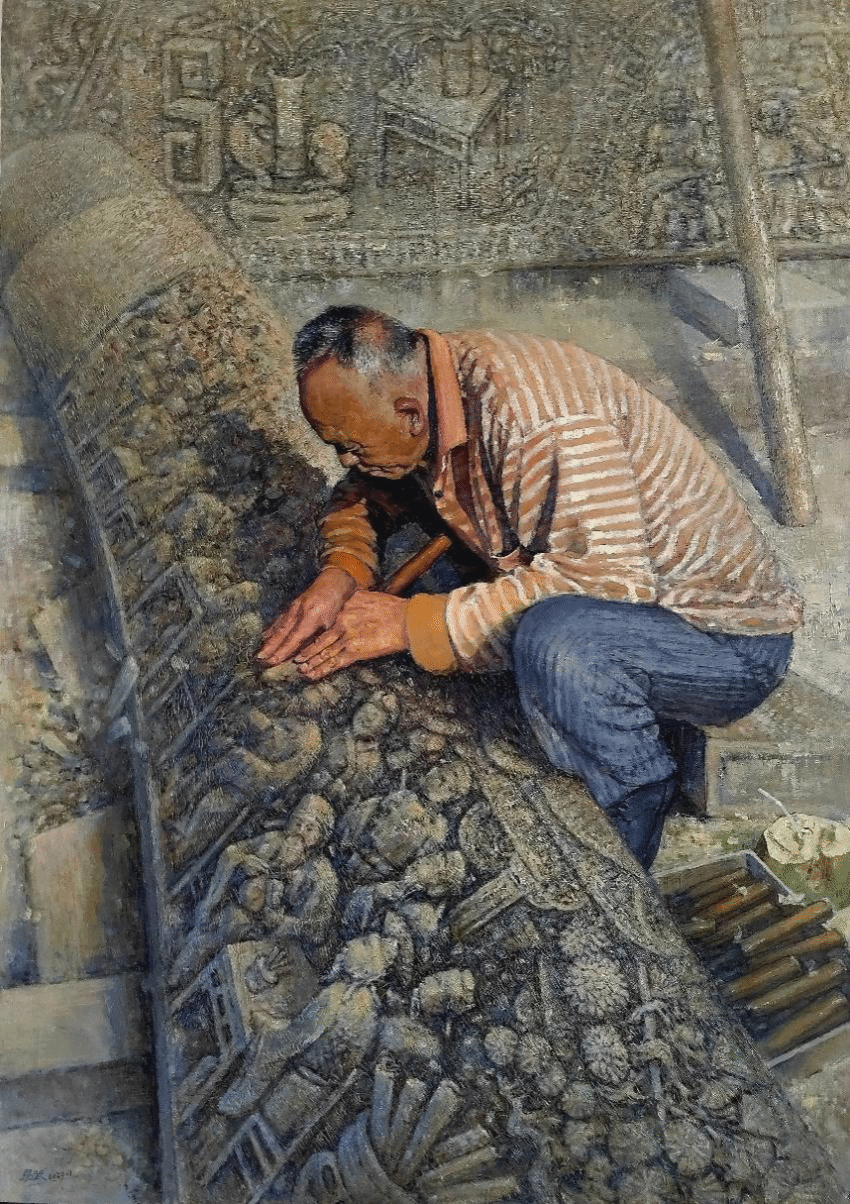 2024年7月18日上午,第十四届全国美术作品展览油画作品展览在上海中华艺术宫开幕,公司退休教师易武教授创作的油画作品《木艺人生》参展。