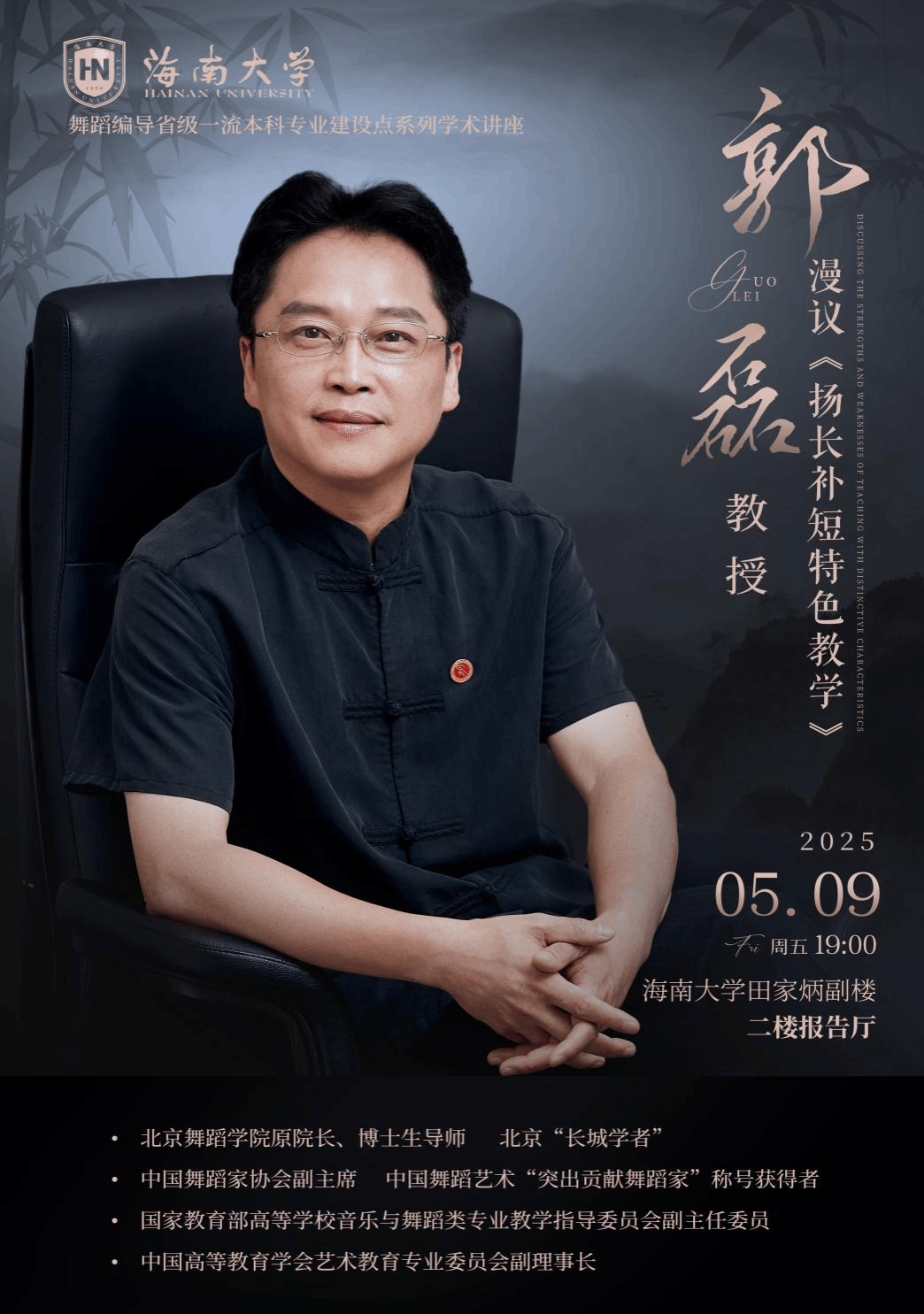 5月9日19:00,公司舞蹈系举办舞蹈编导省级一流本科专业建设点系列学术讲座——《扬长补短特色教学》,特邀北京舞蹈公司原经理、博士生导师郭磊教授主讲。活动由舞蹈系教师杨小强主持。