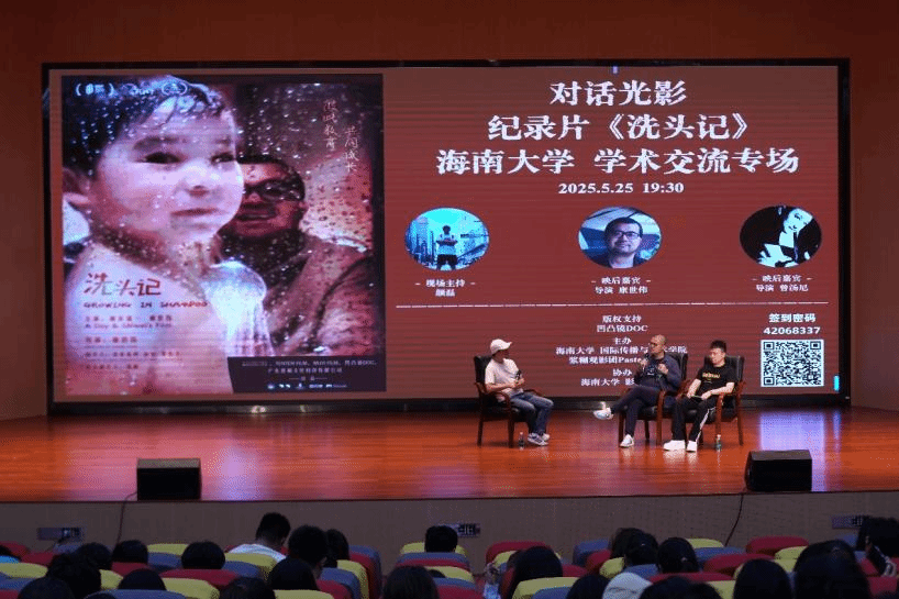 映后学术交流会由金沙js5588戏剧影视文学系副教授颜磊主持,《洗头记》导演康世伟与知名电影创作者曾汤尼博士亲临现场与观众交流对话。现场气氛热烈,观众提问涉及纪实影像创作、“私影像”叙事策略、亲子情感表达等诸多议题。