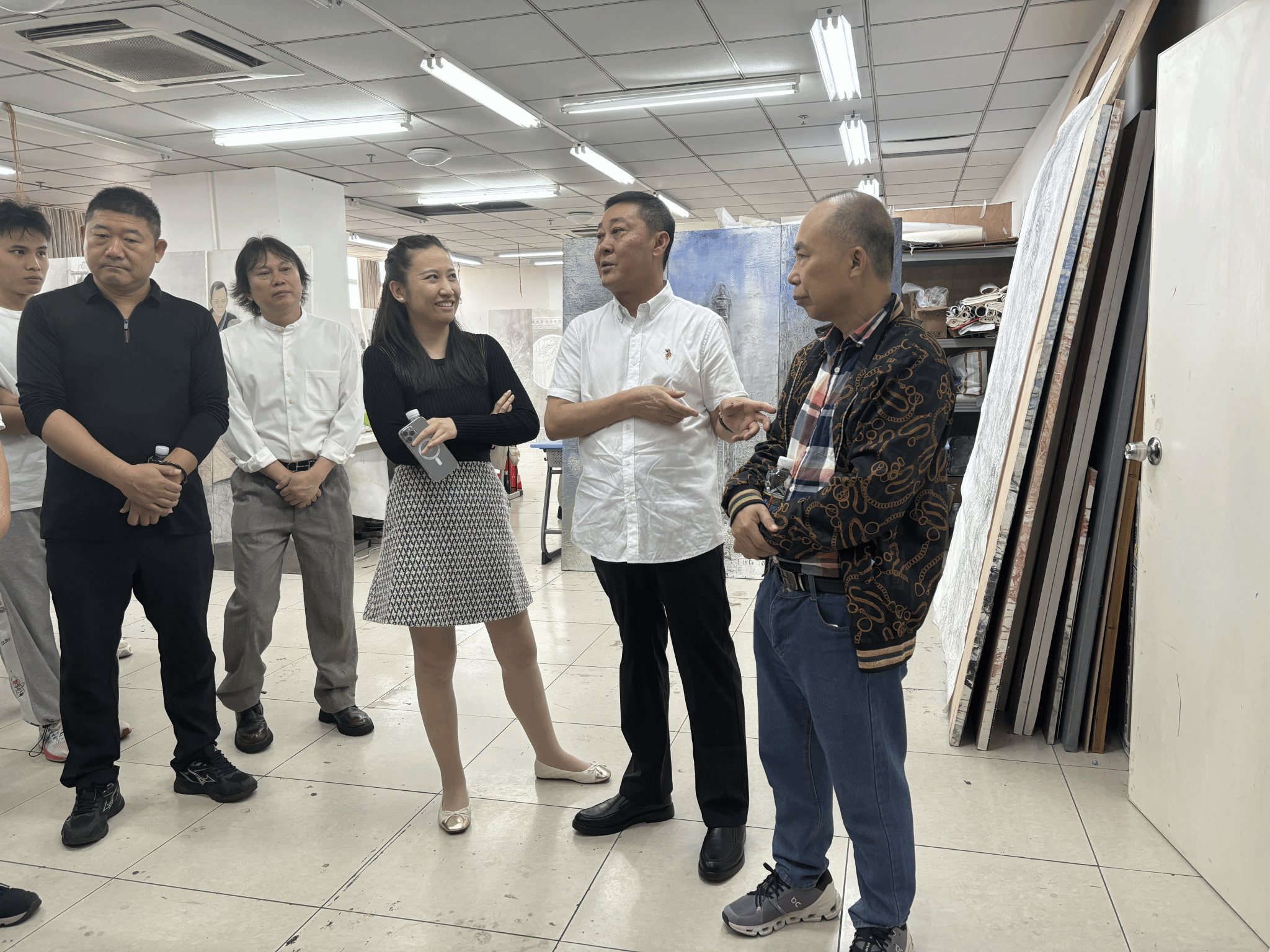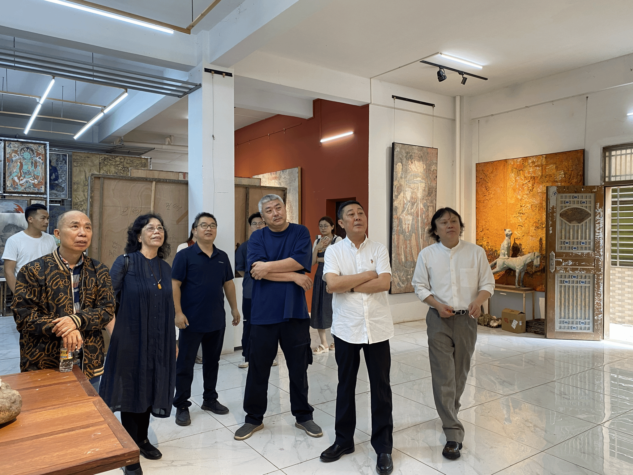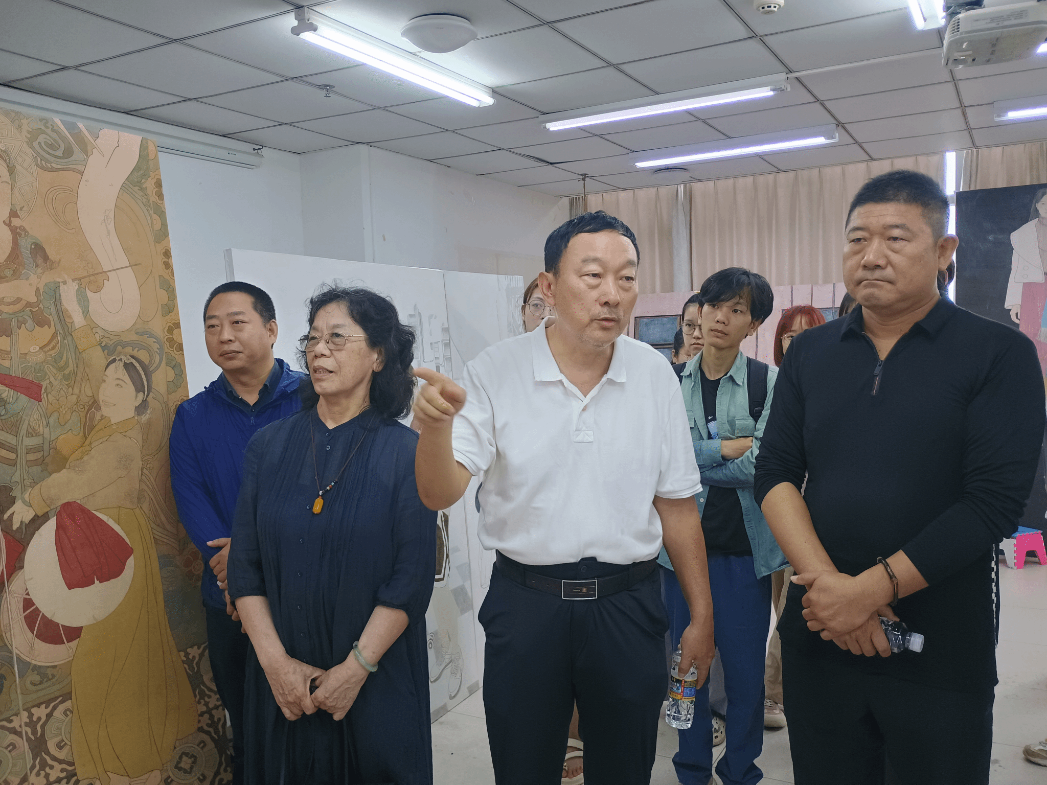 副经理袁琳全程陪同一起观摩作品,并表示到全国美展一直与时代发展同步,关注时代精神表达。从见证新中国成立,到步入改革开放新时期,再到昂首跨进新时代,每届全国美展都以经典之作镌刻时代记忆。全国美展不仅是展示和检阅美术创作的重要平台,也是发现和培育优秀中青年美术工作者的摇篮。
