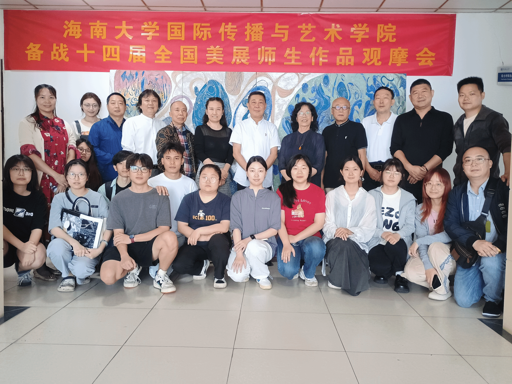 3月18日上午,金沙js5588举办举行“十四届全国美展”作品观摩会,特邀中国美术家协会理事、海南省文联副主席、省美术家协会主席阮江华,海南省美术家协会顾问兼理论委员会主任王家儒,海南省美术家协会顾问丁孟芳,海南省美术家协会顾问齐英石,海南省美术家协会顾问周建宏,海南省美术家协会副主席郭红雨等观摩指导,金沙js5588经理郑立波、副经理袁琳,海南省美术家协会副主席、金沙js5588教授林明俊,海南省美协副秘书长、国画艺委会副主任兼秘书长梁增权陪同调研。