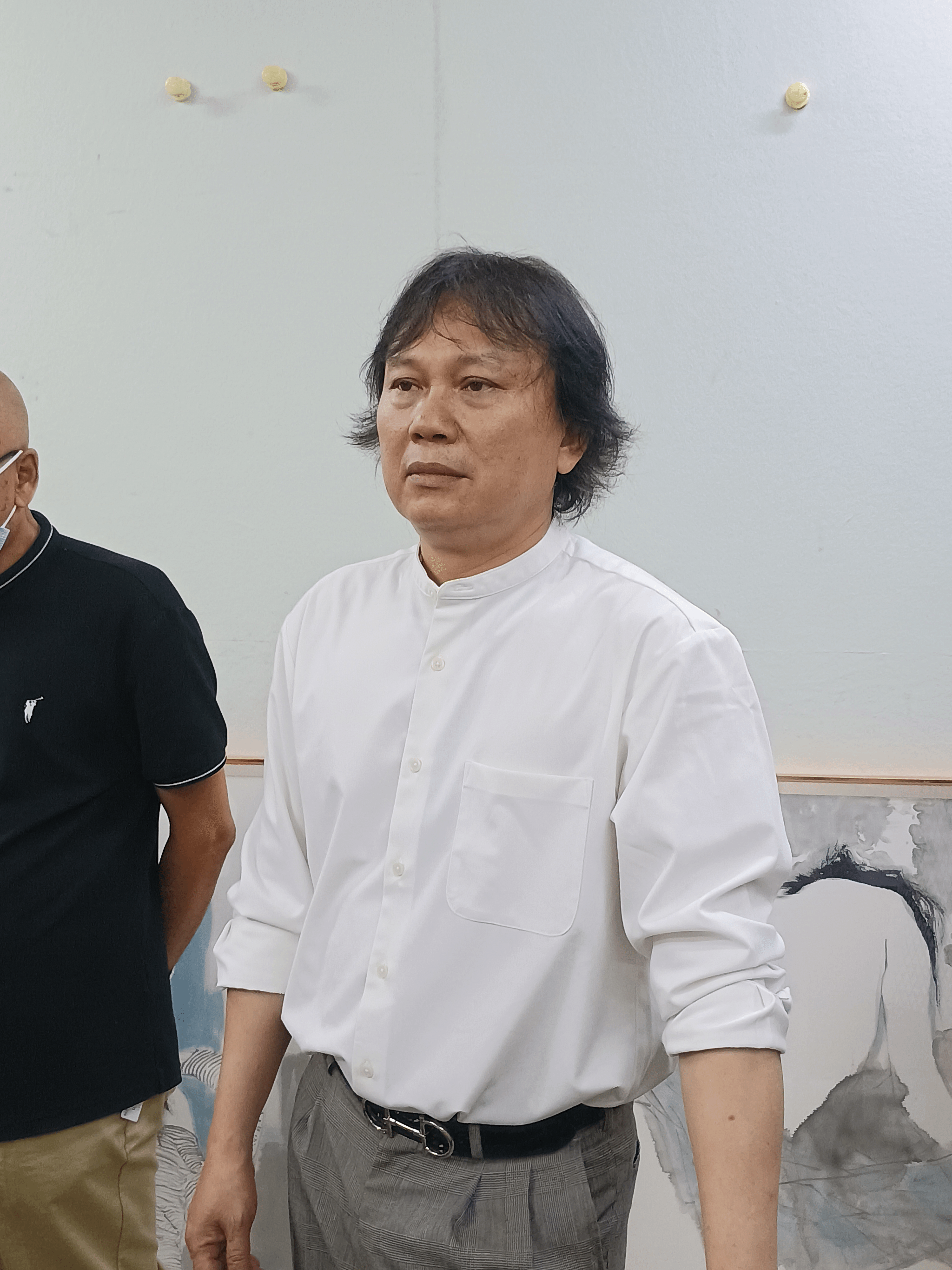 周建宏谈到,今天非常荣幸,受海大所邀,来了以后感受很深,总的感想是师生作品、画面、题材、完成形式,已经向着国展方向在走,海大的老师特别用心,特别是林明俊教授,不仅自己向着更高层次创新,同时带领年轻教师和员工一同向着全国一类展览抓紧重新,向更高的层次和成绩迈进,祝福老师和同学在第十四届全国美展上有好的表现和好的成绩。